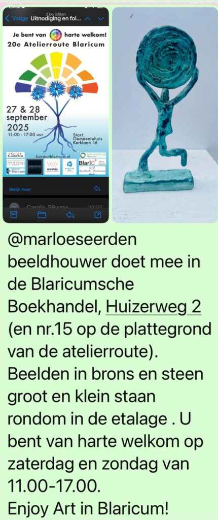 Kunstroute kunstenaarsvereniging Flevoland met een beeld van Marja Thijssen